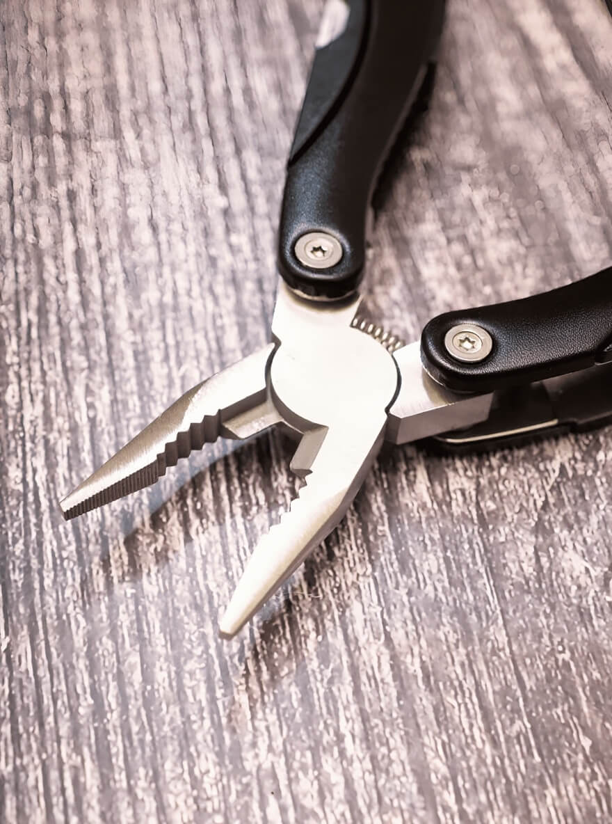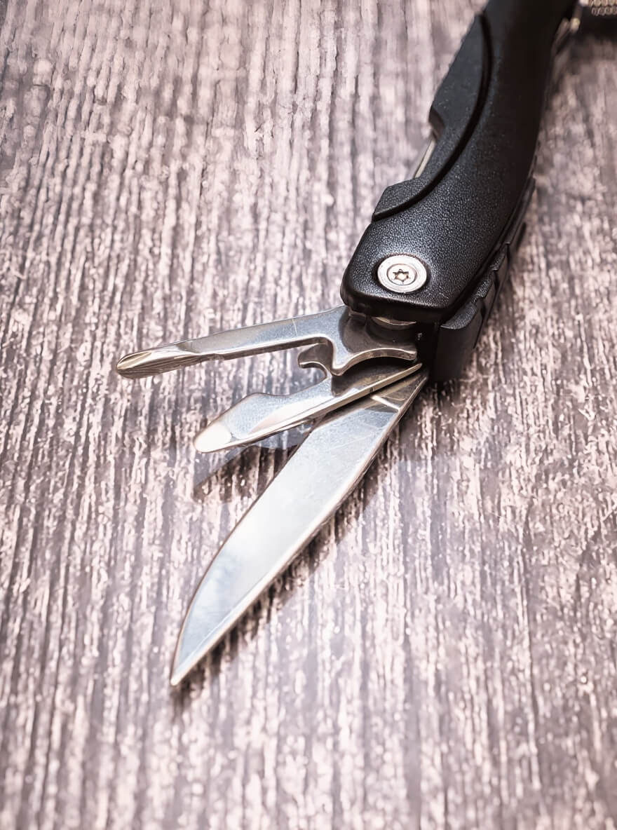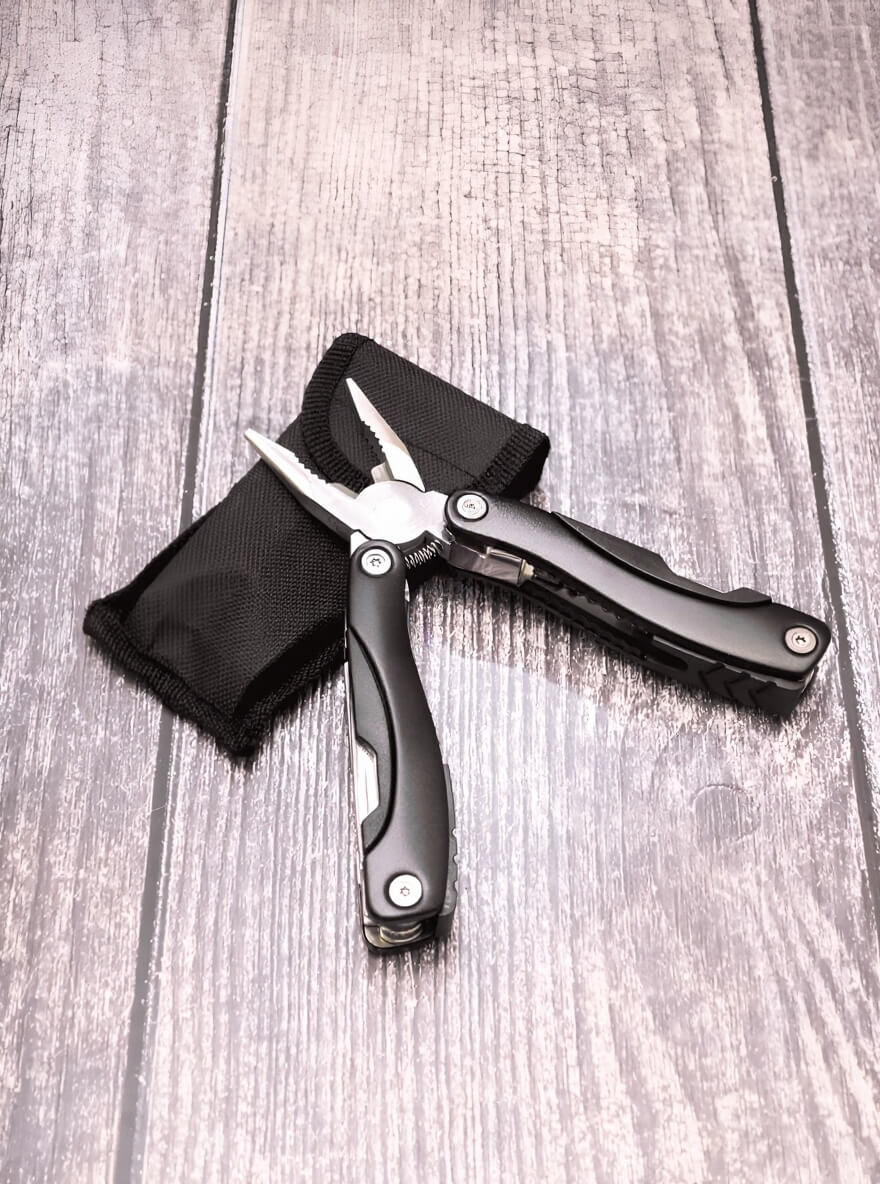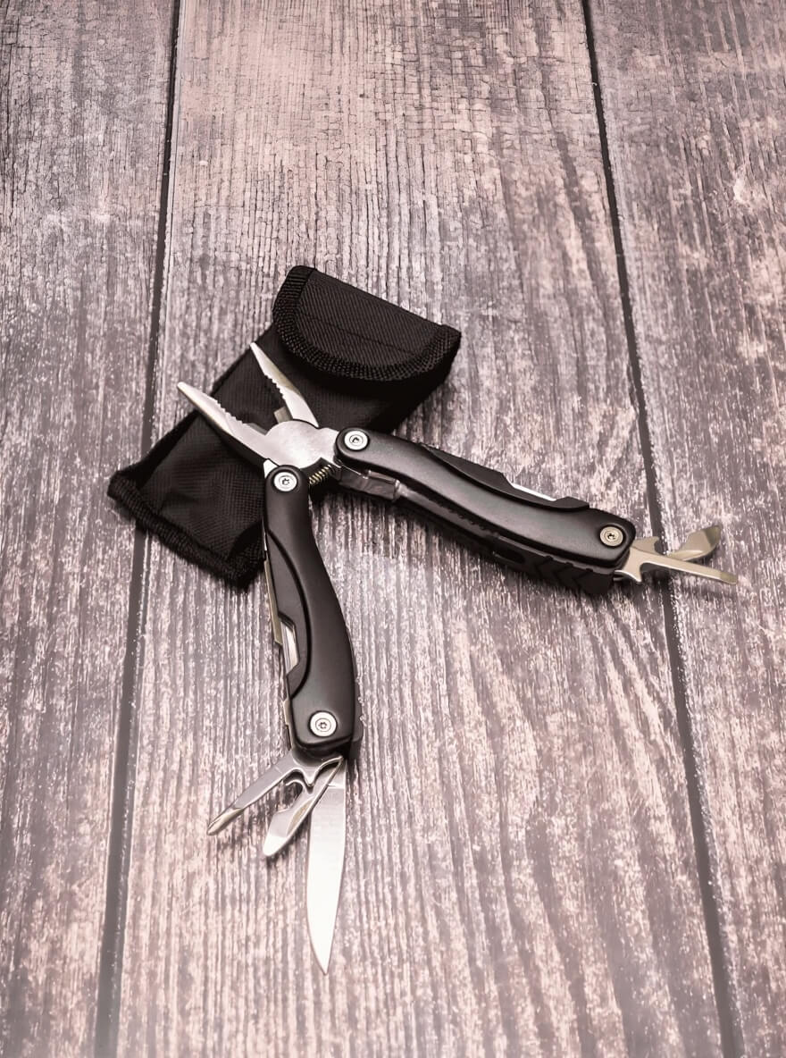 нож, чистилка для рыбы, линейка, открывашка малая, открывашка большая, крестовая отвертка, плоская отвертка, напильник, ножовка по дереву, кусачки, плоскогубцы, орехокол