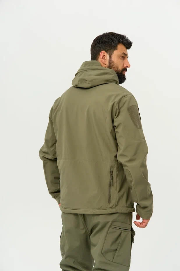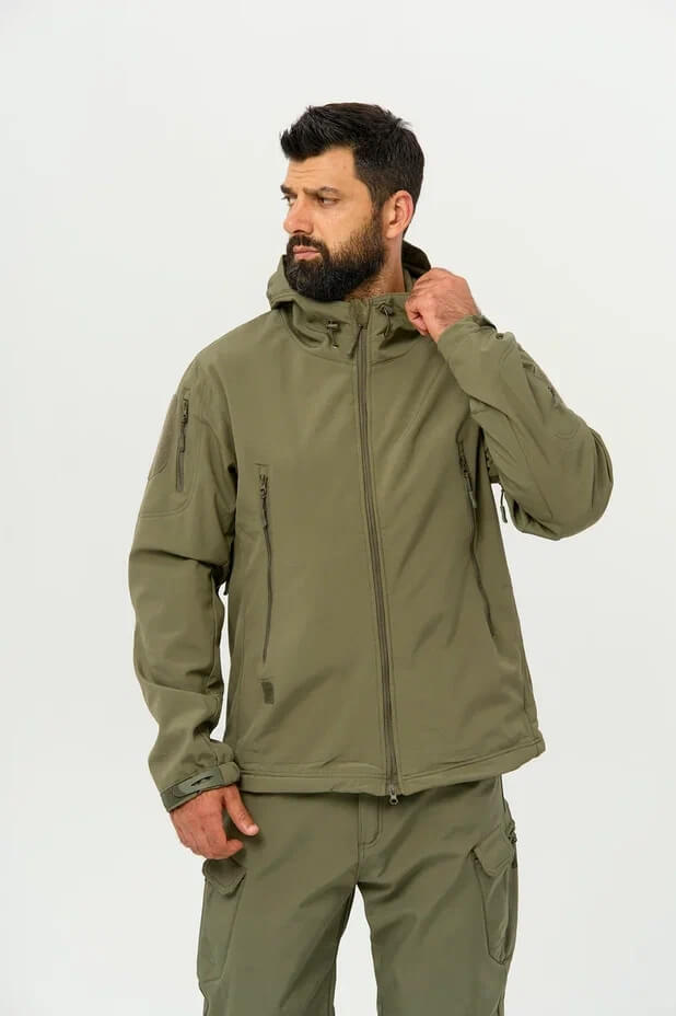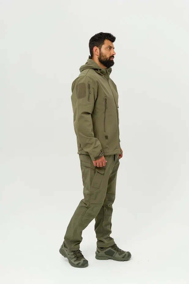 Тактический костюм SoftShell подойдёт и для активного отдыха, охоты, рыбалки, туризма, игры в страйкбол, пейнтбол. Softshell - это ткани с многослойной конструкцией, внешне напоминающие нейлон, а с изнанки - флис. Концепция производства софтшелла позволяет достичь оптимальных эксплуатационных характеристик всего от одного слоя одежды, заменяющего два и более: отведение влаги, вентиляция, сохранение тепла, защита от ветра и осадков. Благодаря плотности ткани и тефлоновому покрытию внешней стороны вода просто скатывается с поверхности изделия, а грязь легко удаляется. Легкий softshell - компактные куртки и брюки из материала с прочным внешним слоем и ворсистым изнаночным слоем. Как уже было сказано выше, такая одежда хорошо сопротивляется воде, ветру и устойчива к истиранию, и очень хорошо "дышит". Взрослые могут начинать носить комплекты из софтшелла, начиная с +5 на улице, детям в зависимости от подвижности - с +5-10 градусов. Под софтшелл можно надевать по необходимости теплые слои одежды по аналогии с мембранной одеждой. Карманов на куртке 6, два со спереди, два на рукавах, два сзади куртки. Капюшон укладывается внутрь куртки. Если вы ищете надежный и качественный, охотничий, рыболовный костюм для работы, отдыха, туризма или других мероприятий, то этот вариант подойдет для вас.