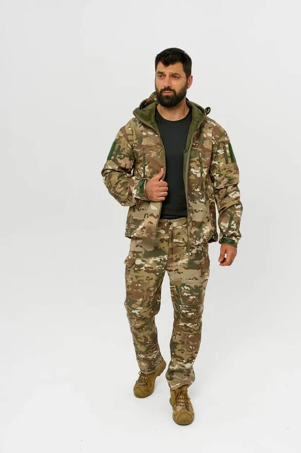 Тактический костюм SoftShell подойдёт и для активного отдыха, охоты, рыбалки, туризма, игры в страйкбол, пейнтбол. Softshell - это ткани с многослойной конструкцией, внешне напоминающие нейлон, а с изнанки - флис. Концепция производства софтшелла позволяет достичь оптимальных эксплуатационных характеристик всего от одного слоя одежды, заменяющего два и более: отведение влаги, вентиляция, сохранение тепла, защита от ветра и осадков. Благодаря плотности ткани и тефлоновому покрытию внешней стороны вода просто скатывается с поверхности изделия, а грязь легко удаляется. Легкий softshell - компактные куртки и брюки из материала с прочным внешним слоем и ворсистым изнаночным слоем. Как уже было сказано выше, такая одежда хорошо сопротивляется воде, ветру и устойчива к истиранию, и очень хорошо "дышит". Взрослые могут начинать носить комплекты из софтшелла, начиная с +5 на улице, детям в зависимости от подвижности - с +5-10 градусов. Под софтшелл можно надевать по необходимости теплые слои одежды по аналогии с мембранной одеждой. Карманов на куртке 6, два со спереди, два на рукавах, два сзади куртки. Капюшон укладывается внутрь куртки. Если вы ищете надежный и качественный, охотничий, рыболовный костюм для работы, отдыха, туризма или других мероприятий, то этот вариант подойдет для вас.