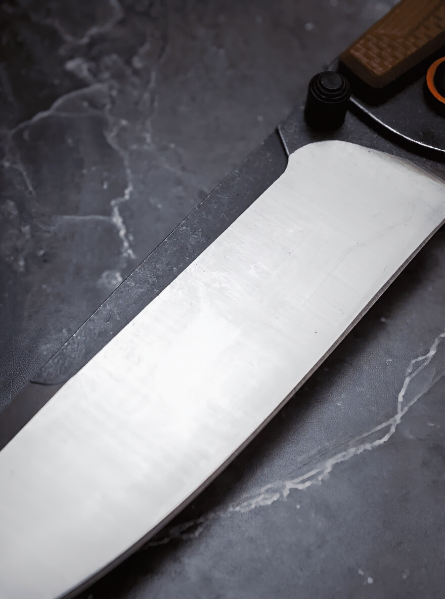 Открытие ножа осуществляется с помощью плавника, что сопровождается приятным щелчком, добавляя элемент удовольствия в процесс использования. В конструкции использованы подшипники для осевого механизма и замок Liner-Lock для надежной фиксации клинка в открытом положении.