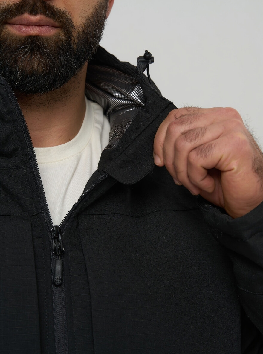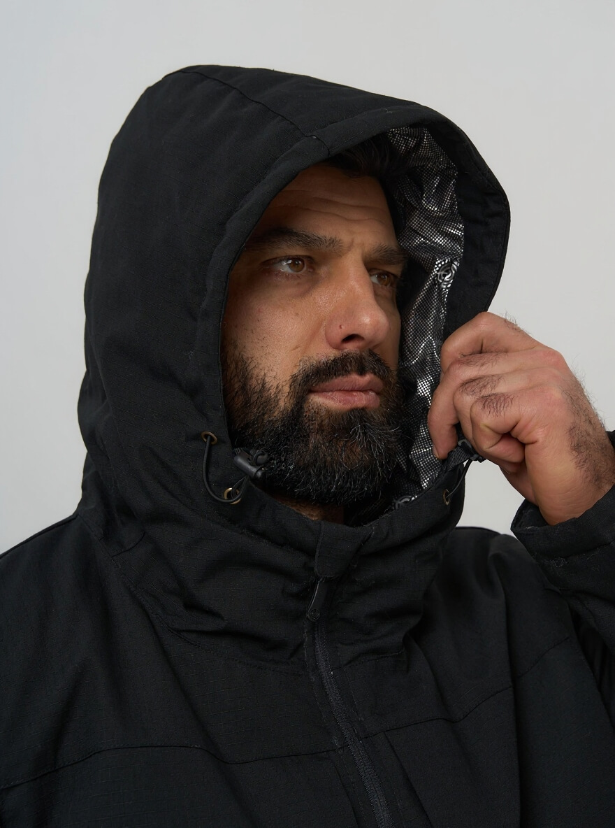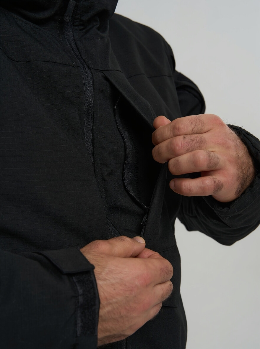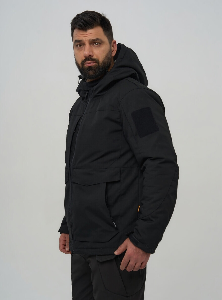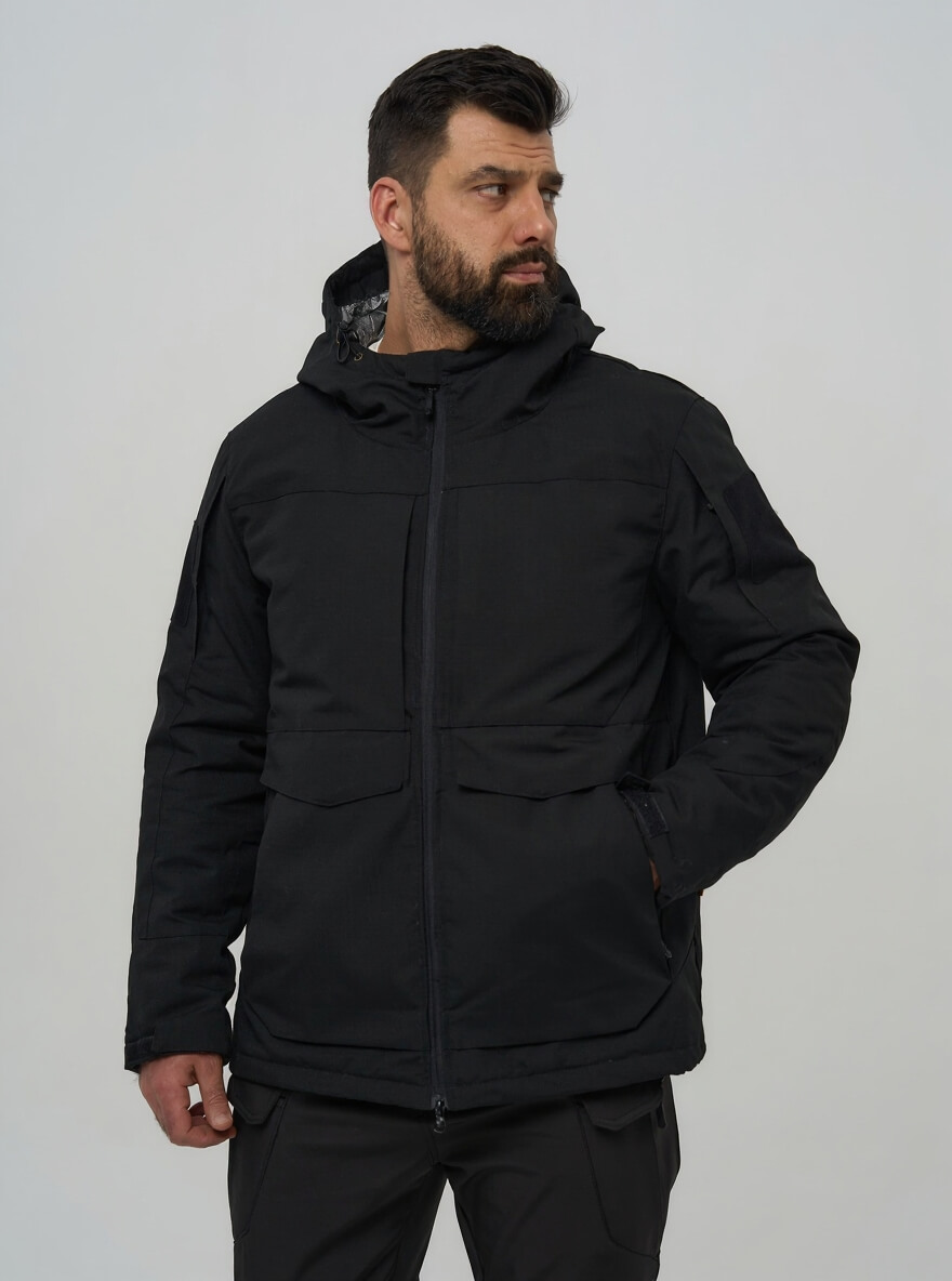 Для тех, кто ценит скрытность и универсальность. Эта куртка в строгом черном цвете сочетает в себе технологичную защиту от экстремальных холодов и тактическую функциональность, оставаясь при этом незаметной в любой обстановке — от городских улиц до профессиональных задач.