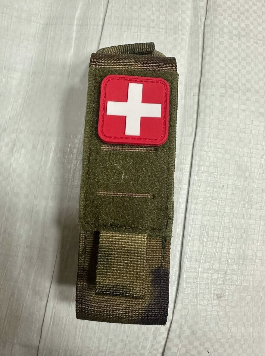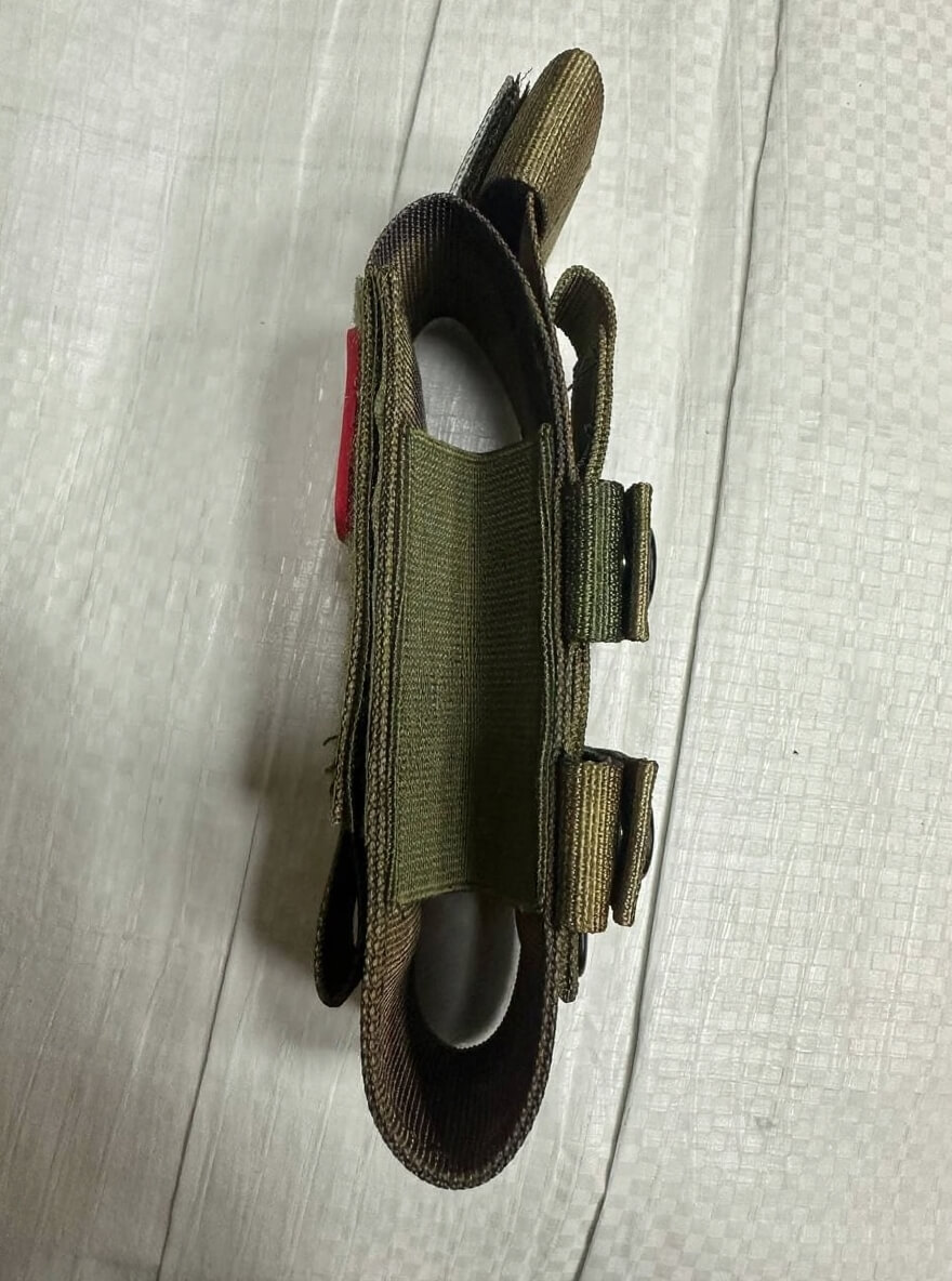 Подсумок для жгута турникета, позволяющий носить его непосредственно на разгрузочном жилете или тактическом поясе. В результате чего турникет всегда будет под рукой и его можно оперативно использовать. Фиксируется с помощью мощной кнопки на стропы MOLLE. Позволяет установку медицинских ножниц. Особенностью данного подсумка под турникет, является возможность его крепления на систему MOLLE не только вертикально, но и горизонтально. А также возможность крепления на вертикальные стропы. Чехол поставляется без турникета и ножниц!