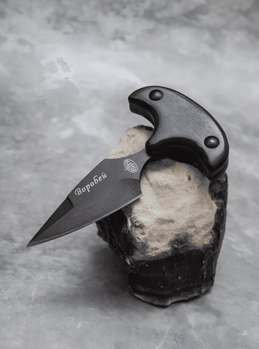 Тычковый нож - надежное и многофункциональное снаряжение, предназначенный для различных задач в сфере выживания и тактического использования. Как правило, такой нож имеет компактный размер, что делает его идеальным для скрытого ношения в кармане, рюкзаке или сумке. Фиксированный клинок ножа изготовлен из нержавеющей стали марки 420, которая обладает высокой степенью устойчивости к коррозии. Благодаря этому, нож сохранит свою структуру и внешний вид в условиях высокой влажности или при воздействии агрессивных сред. Эта сталь не требует особых навыков для заточки и легко поддается этому процессу. Рукоять выполнена из пластика. Клинок профиля Spear point выглядит как кинжал, имеет симметричную форму с острым кончиком (напоминает скальпель), что обеспечивает удобство использования как для правшей, так и для левшей. Это делает его универсальным при эксплуатации. Поставляется нож охотничий с чехлом из пластика. Ножны защищают лезвие от повреждений, обеспечивают безопасное ношение и удобное хранение. Благодаря возможности чехла, нож можно повесить на шею. Шейный нож — компактный и стильный аксессуар, который предоставляет быстрый доступ к функциональному лезвию при различных повседневных задачах.