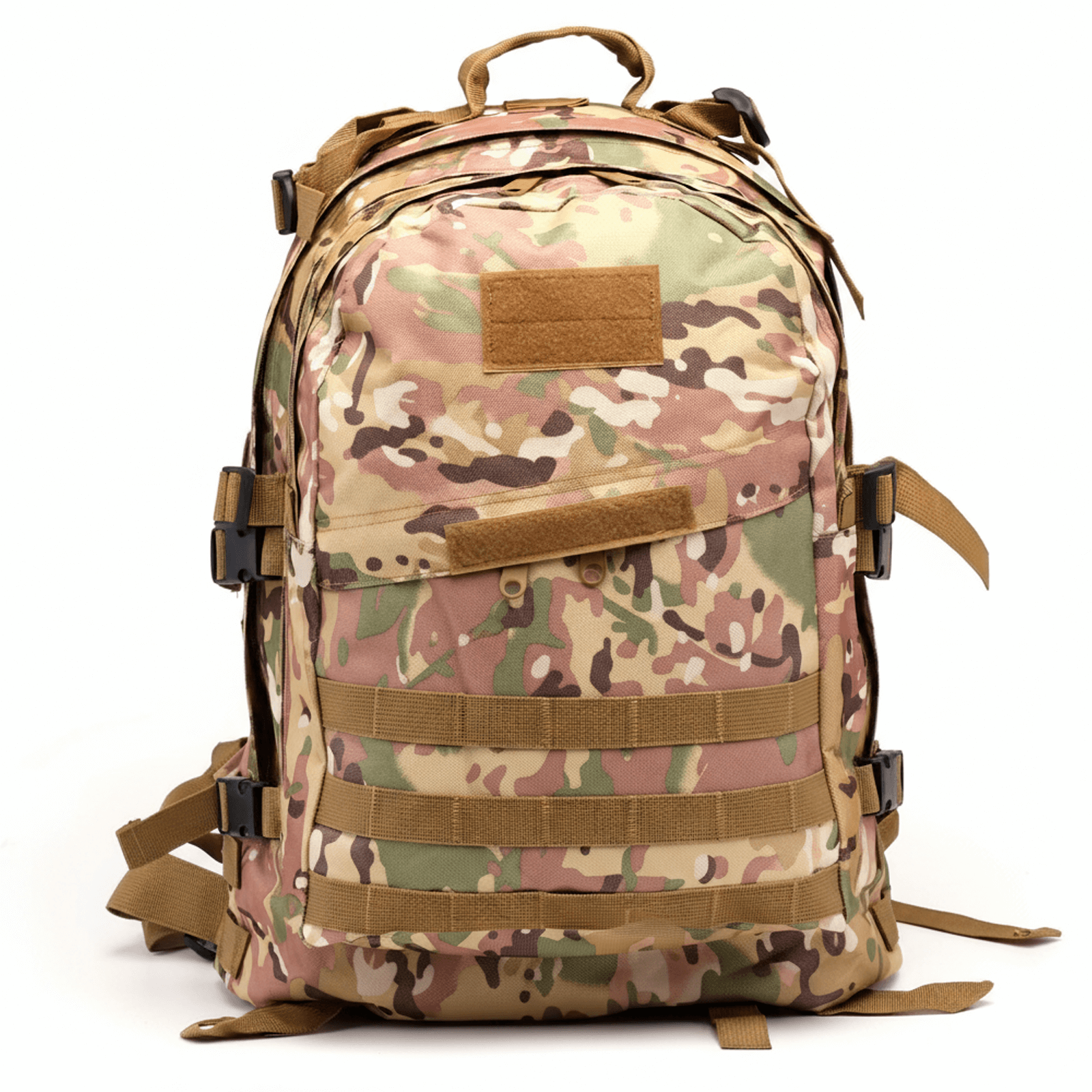 Большой многофункциональный рюкзак из специальной износостойкой ткани, для самого широкого применения. Выполнен из влагостойкого материала - прорезиненного нейлона 600D. Идеально подходит для охоты, рыбалки, туризма и активного отдыха. Имеет усиленный алюминиевый трубный каркас для придания жесткости. Оснащен специальным внутреннем карманом для планшета или ноутбука. Рюкзак камуфляжный оснащен эргономичными лямками с D-образными кольцами и системой MOLLE для навески дополнительного снаряжения. Туристический походный ранец имеет горизонтальные и вертикальные натяжные стропы на Фастексе для регулировки груза. Скрытые двойные молнии. Регулируемый поясной ремень с мягкой вентилируемой подкладкой и пряжкой на Фастексе. Горизонтальное и вертикальное натяжные стропы на Фастексе для регулировки груза. Регулируемая грудная межлямочная стропа с пряжкой на Фастексе. Регулируемые подтяжки BERG + M-Tac ремни на нижней части рюкзака + MOLLE. Нейлоновая ручка. Вентилируемая мягкая ортопедическая подкладка спинки рюкзака туристического обеспечит комфорт в походных условиях и снизит нагрузку при переноске тяжестей по неровной горной местности. Тактический мужской рюкзак имеет вместительный влагозащищенный основной отсек с внутренним карманом, который обеспечивает быстрый доступ к содержимому. Объем 40 литров. Спортивный подсумок подойдет для сплавов, занятий горным туризмом. Актуален для спорта и фитнеса. Полезный аксессуар для коротких восхождений в горы и небольших походов в сложных условиях — в непогоду. В альпинизме используется как штурмовой. Легко вместит крупногабаритные предметы: удочки, оружие, инструменты и другие принадлежности.